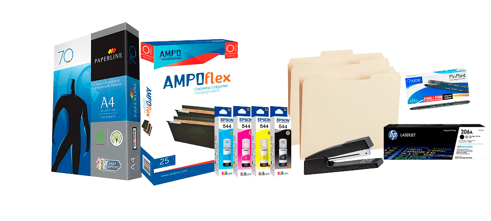 Papelería y archivo - Escritura y marcación - Impresión y consumibles - Suministros de escritorio - Higiene básica